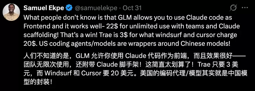 而Windsurf的SWE-1.5背后,极有可能采用了智谱的GLM 4.6……