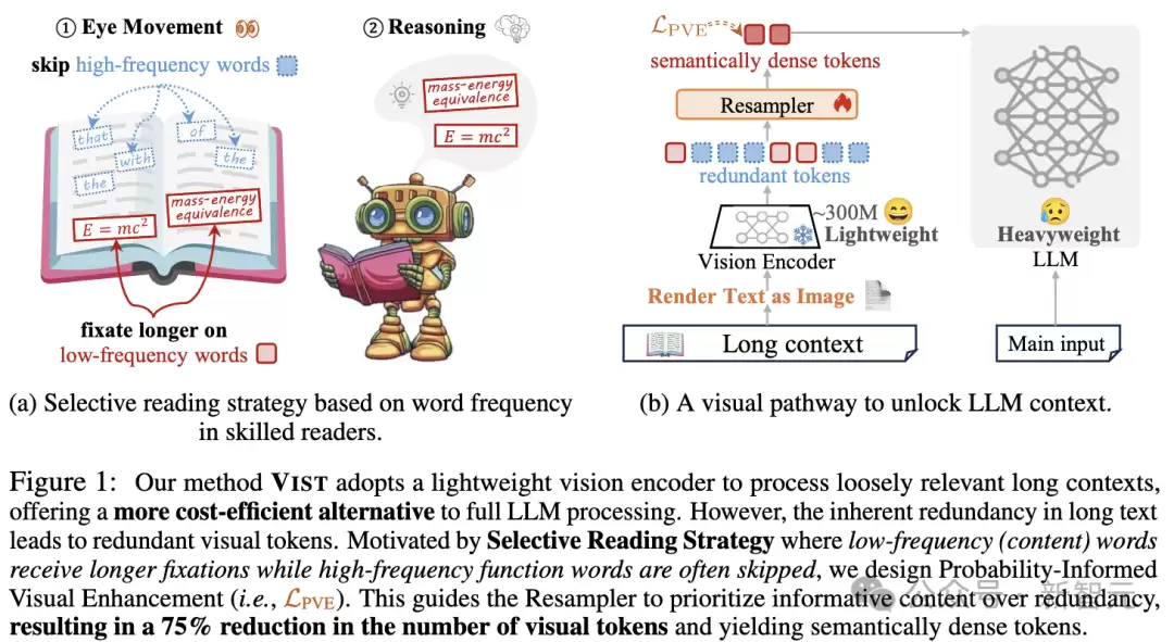VIST则借鉴了人类高效阅读的认知技巧,提出了全新的快-慢视觉压缩框架,用视觉方式处理长文本,让模型既能快速扫读把握大意,又能深度理解核心内容。