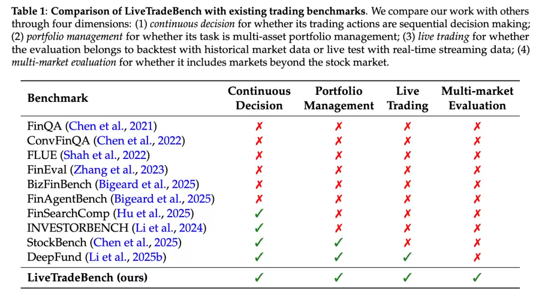过往的评测多停留在知识问答、逻辑推理或指令理解层面。而 LiveTradeBench 首开先河,让大模型“下场交易”——在真实金融市场的动态博弈中,检验其感知、推演与决策能力。
