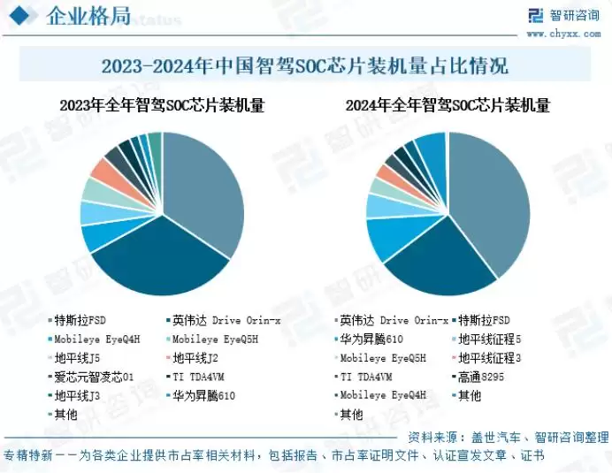 在智驾芯片领域,英伟达仍然占据不小的份额。据智研咨询数据,在2024年中国智驾SOC芯片装机量中,英伟达的装机率39.8%,特斯拉为25.1%,华为昇腾610和地平线J5分别为9.5%和5.1%。