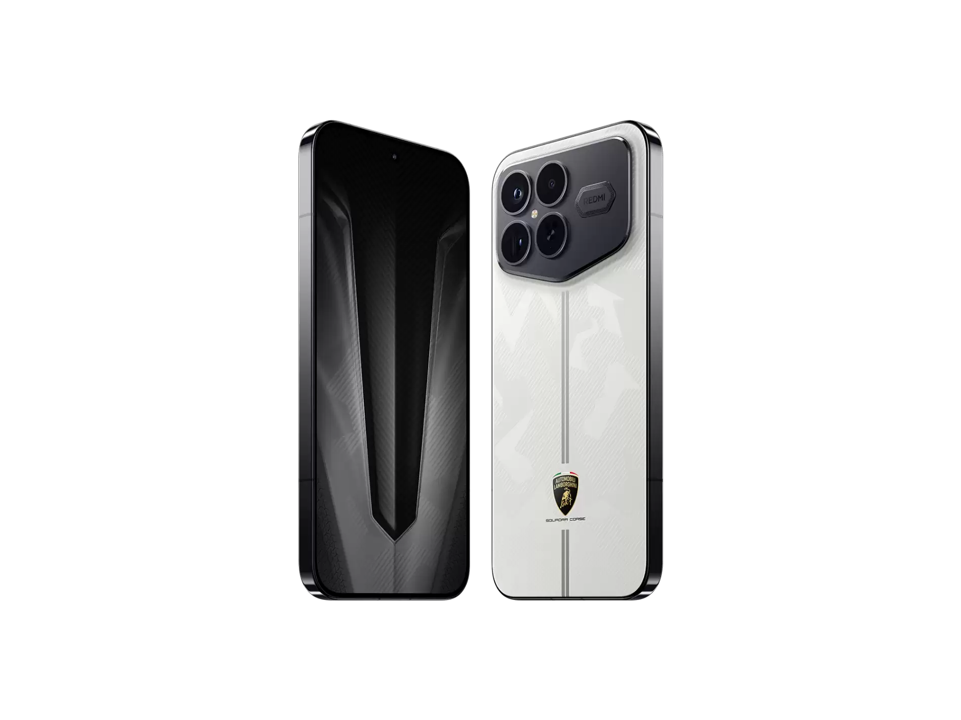 REDMI K90 Pro Max冠军版的设计灵感源于兰博基尼推出的首款混合动力赛车原型车—— 兰博基尼SC63 ,代表了极致马力和空气动力学的完美结合。手机以兰博基尼标志性的Bianco Alpi(白色)为底色,通过精湛工艺还原实车涂装的凌厉纹路,搭配兰博基尼汽车 SQUADRA CORSE 盾牌标识,尽显性能和动感。相机Deco借鉴了赛车前部大胆的线条造型,与贯穿式的赛车运动腰线组成“Y”型视觉元素,呼应了兰博基尼赛车标志性的设计美学。此外,手机包装盒、手机壳、充电器、卡针和手机主题壁纸也都深度定制,处处彰显赛道基因。