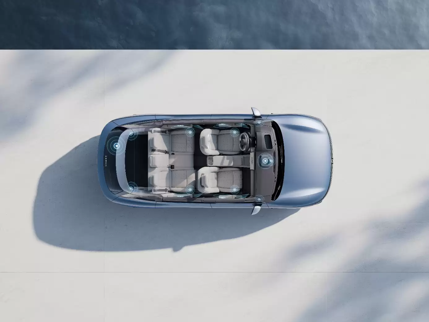 内饰方面,立柱与顶棚采用麂皮绒材质包覆,搭配四门双层夹胶静音玻璃,营造出静谧舒适的驾乘环境。新增黑紫、黑橙两种配色方案,满足个性化需求。听觉体验上,全栈自研的ZEEKR Sound Pro音响系统标配21个扬声器,搭载0.03mm超薄钛振膜与2160W峰值功率,支持7.1.4声道杜比全景声,经过AI调音与金耳朵团队优化,为全家带来沉浸式音效。