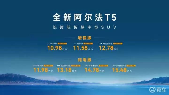 阿尔法T5超值上市:10.98万起配元境智行与神擎增程