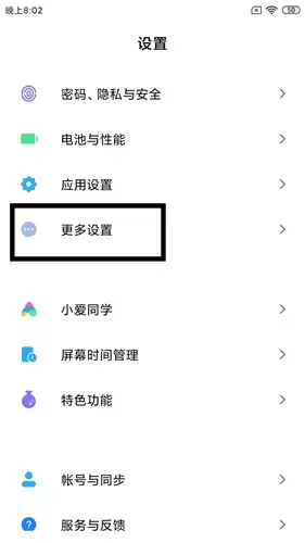 1. 首先在手机桌面上找到并打开“设置”应用,进入后下拉菜单找到“更多设置”板块。