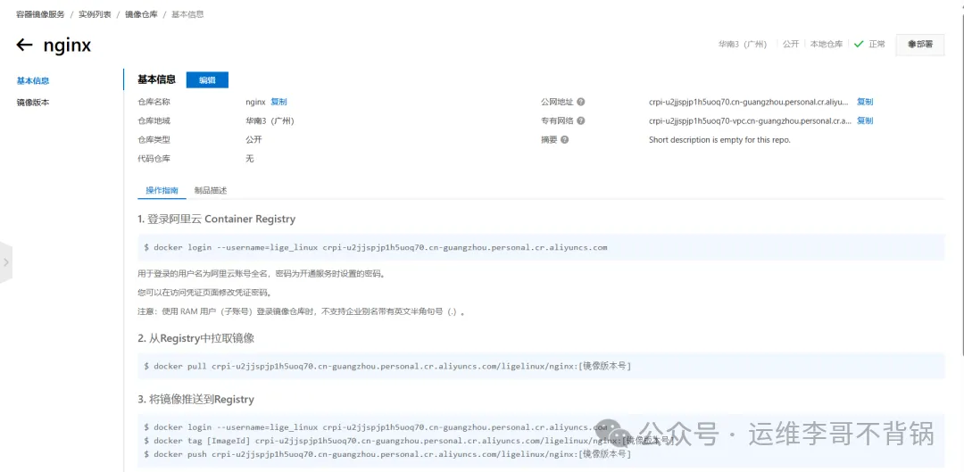 接下来就带你一步步完成阿里云镜像仓库的配置,这个仓库不仅支持全网访问,还能灵活设置为私有模式。