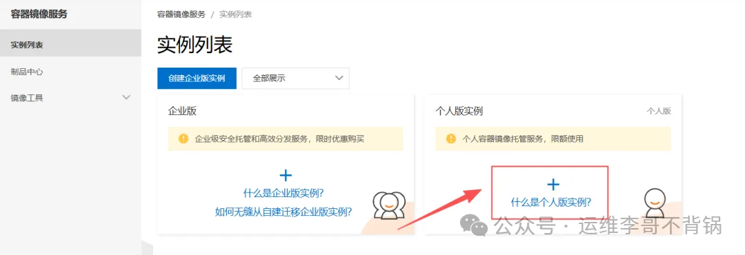 想要免费使用的话,选择创建个人版实例就能享受基础服务。