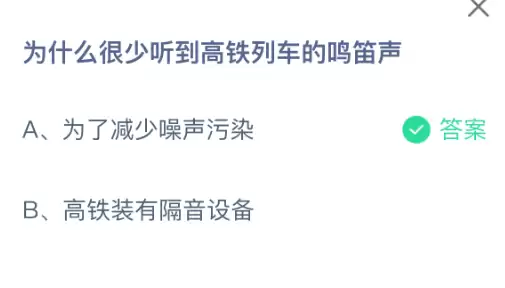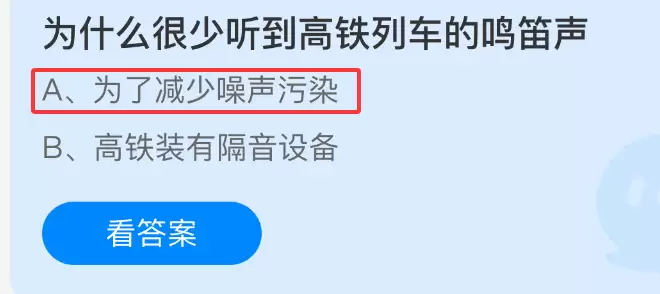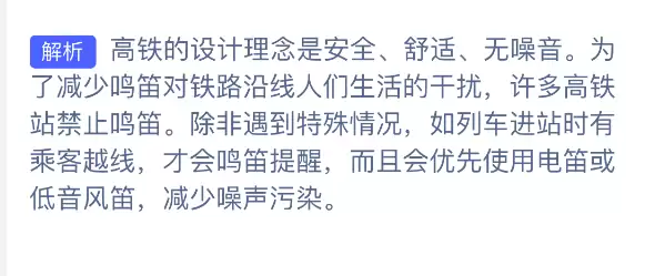 为什么现在乘坐高铁时很少听到列车的鸣笛声呢?支付宝小鸡课堂今日正式开课啦!每天花上一分钟参与答题,就能赚取喂养小鸡的饲料。只要喂喂小鸡,就能轻松献爱心,是不是既轻松又有意义呢!2025年11月3日蚂蚁庄园的题目正确答案是【为了减少噪声污染】,高铁列车缩减鸣笛的主要原因正是为了降低噪音影响。随着铁路通信技术的快速发展,现在大多数情况下已经可以通过设备联络来替代传统鸣笛,同时许多居民区还被划定为限制鸣笛区域。