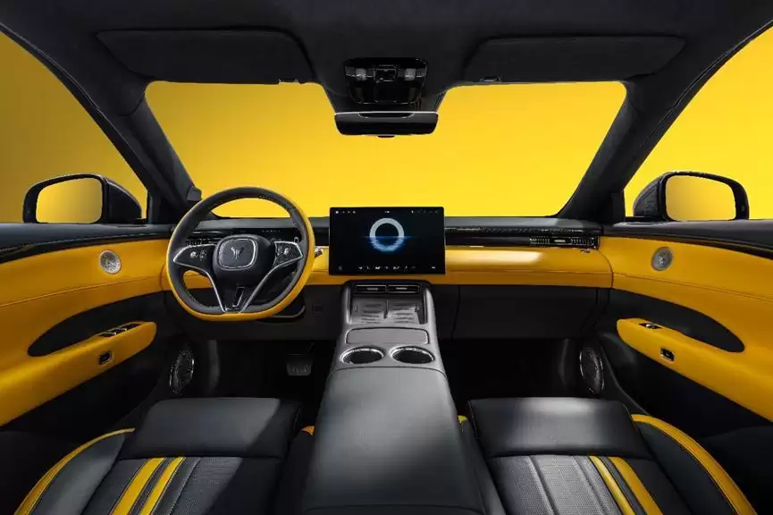 车内空间则以“运动与舒适并存”为核心。玄金双拼撞色内饰打破传统SUV的居家风格,仪表台、门护板及方向盘采用黄色超纤材质,与A/B/C柱及顶棚的仿麂皮形成对比,营造出强烈的驾驶氛围。升级后的NAPPA环抱式运动座椅以头层牛皮包裹,人体工学设计在激烈过弯时提供充分侧向支撑,较理想L6、问界M5更注重驾驶者的身体包裹感。暗影哑光碳纤维组件并非装饰性元素,外后视镜与驾驶舱面板区域采用100%真碳纤维丝,独特纹理处理增添性能车质感。可选装的智慧星空顶支持语音控制12种定制模式与14种分区色彩,为长途驾驶增添浪漫气息,这种“刚柔并济”的设计在同级车型中极为少见。