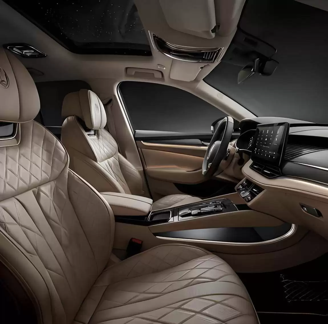 从最新发布的图片来看,新一代速派在设计语言上实现了突破性进化。基于全新平台打造的车身轮廓,与宾利慕尚等超豪华车型形成微妙呼应——流畅的腰线贯穿4.8米以上车长,配合1.9米车宽与2.8米轴距,营造出修长且稳重的视觉效果。细节处,银色金属饰条勾勒车窗轮廓,黑色B柱装饰面板与20英寸多辐式轮毂形成色彩碰撞,配合银色刹车卡钳与侧裙装饰,既保留商务气息又增添运动质感。传统门把手设计搭配无钥匙感应系统,在实用性与仪式感间取得平衡。