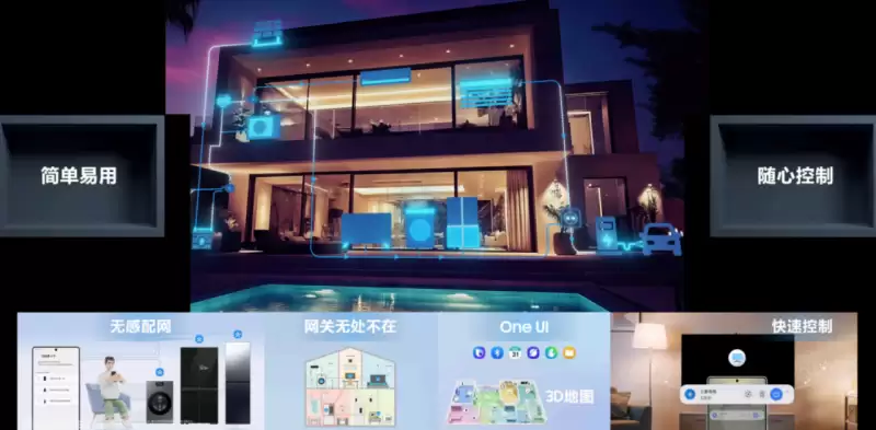 三星还打造了生态级AI协同能力。三星SmartThings平台,将包括电视、显示器、Soundbar、无线充电底座等多品类家电集成中枢网关功能,构建了一个稳定高效且无处不在的家庭互联网络,从而将家人、家居、服务连接为一体,提供着以人为中心的智能生活服务。