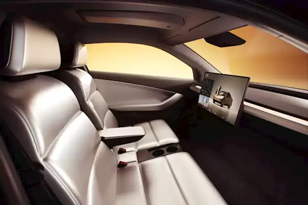 设计方面,Cybercab展现出独特的造型语言:车顶线条流畅下掠,形成轿跑式轮廓,配备掀背式尾门,后备箱空间充裕,便于存放乘客行李。车辆采用蝴蝶门(鸥翼门)设计,车内仅设两个座位,布局极致简洁,唯有一块中控屏幕。马斯克还透露,该车型将支持感应充电技术,高度适配无人驾驶出租车的运营场景。