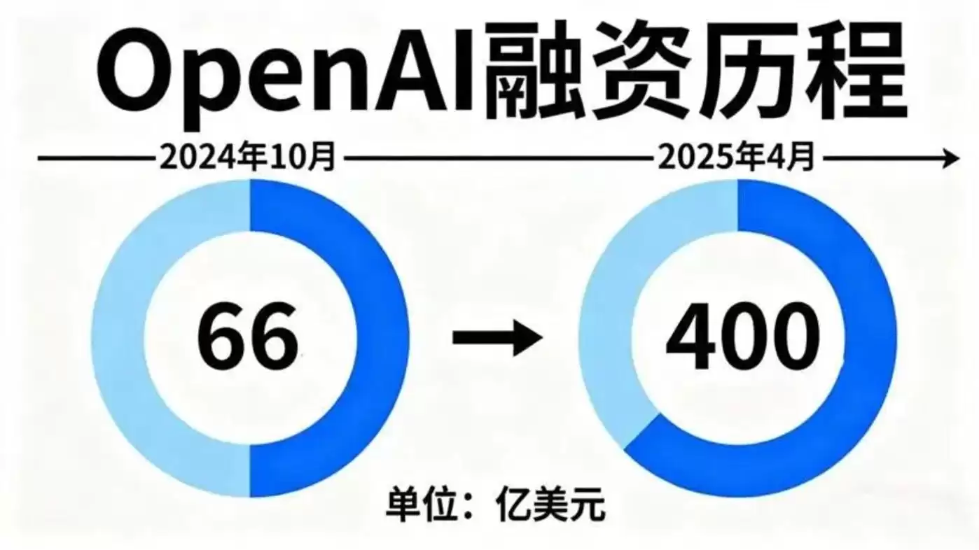 2024年10月,OpenAI曾宣布筹集到66亿美元的新资金,该轮融资由Thrive Capital领投,参与者包括微软、英伟达、软银等公司。到了2025年4月,OpenAI再次宣布完成高达400亿美元的新一轮融资,投后公司估值达到3000亿美元、仅次于SpaceX,成为全球估值最高的私有公司之一。