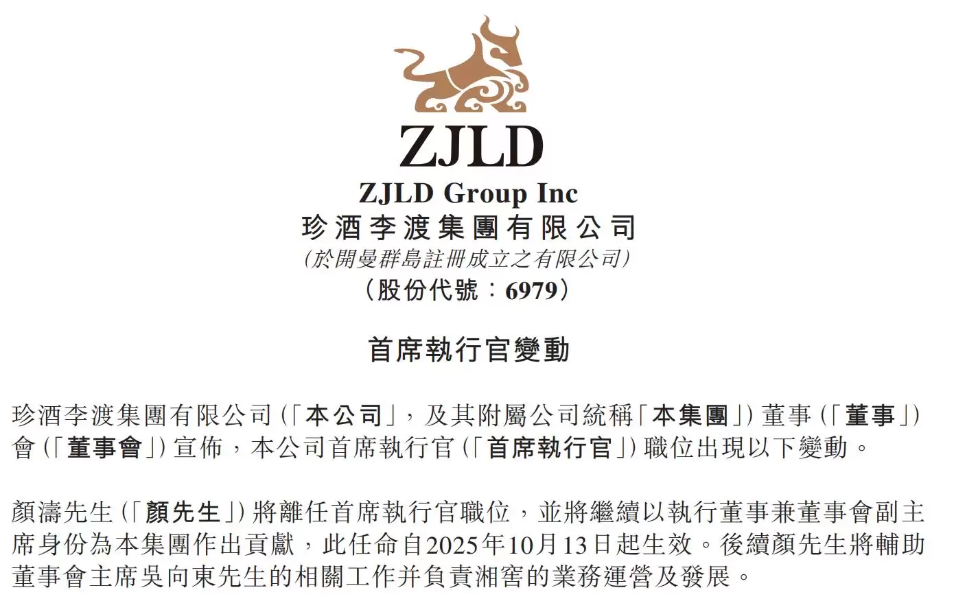 组织层面,就在刚过去的10月,珍酒李渡突然宣布核心高管团队换防:原CEO颜涛转任董事会副主席,公司老将汤向阳接棒成为新任首席执行官。