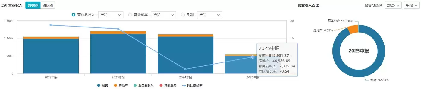 从营收结构来看,公司仍然高度倚赖核心子公司金赛药业。前三季度金赛药业实现营业收入82.13亿元,同比微增0.61%,占总营收的83.75%。但其归母净利润却同比大幅下降49.96%至14.21亿元,呈现出明显的"增收不增利"态势。这意味着,金赛药业产品一边降价促销,一边投入大额推广费用推进三甲医院引流,最终却只是勉强守住了营收的基本盘。