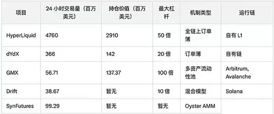 - Drift 和 SynFutures:分别在 Solana 和 Base 上采用混合模型及全链上订单匹配引擎,针对不同市场定位提供多样化服务。