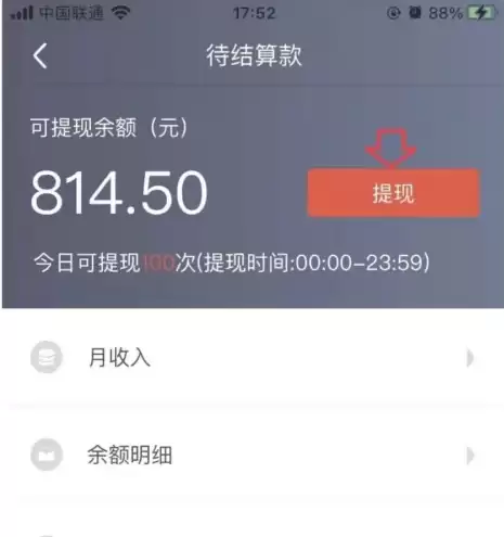 跳转到待结款项页面后,找到并点击提现按钮,系统会立即处理您的提现申请,整个操作就完成了。