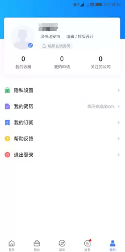 3、因此在这个应用里,我们无法发布招聘信息,只能投递个人简历,查找对应公司的相关资讯。