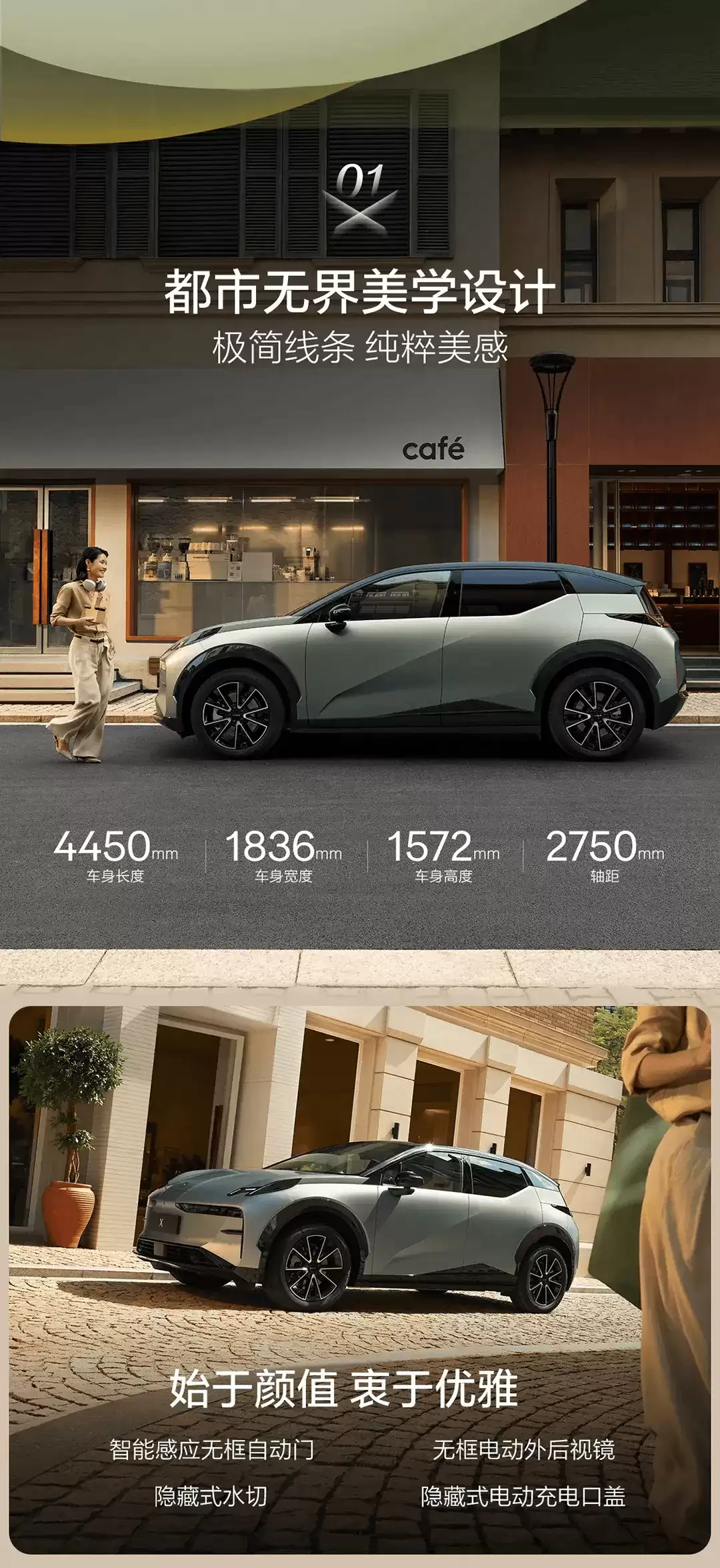 作为年度改款车型,全新极氪X在外观设计上延续了品牌标志性的极简主义风格。矩阵式LED前大灯巧妙融入封闭式格栅设计,扁平化的车身轮廓赋予整车强烈的科技未来感。车身尺寸方面,新车的长宽高分别为4450mm、1836mm和1572mm,轴距达到2750mm,为车内空间提供了充裕保障。配色选择上,极氪X提供了巴黎玄米、苏墨灰、奥斯陆黑、加州霞粉、杭青绿和西雅图绿六款独具特色的车身颜色,满足消费者的个性化需求。