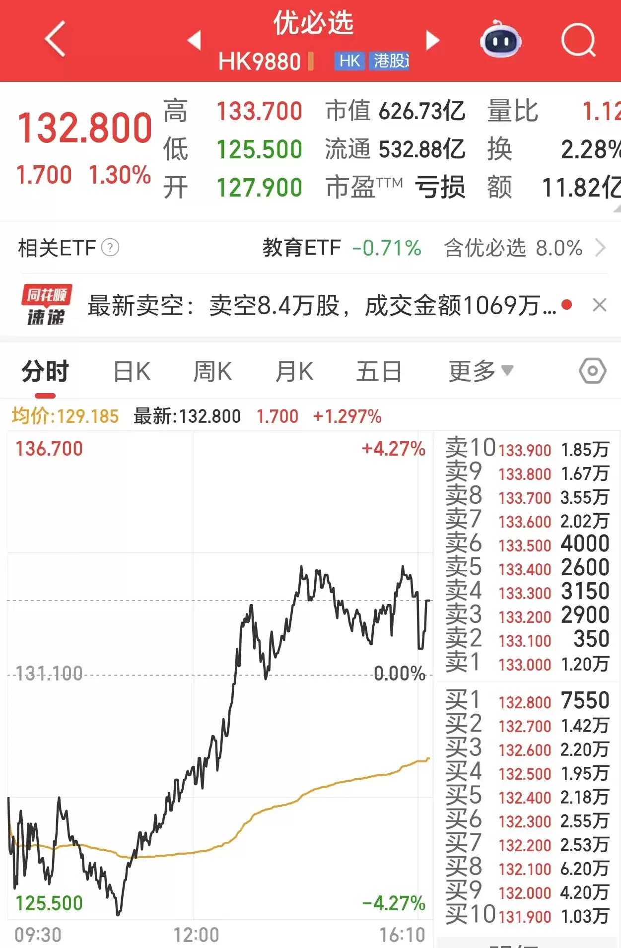 11月5日,优必选股价早盘一度下挫4.27%,午后逐步企稳回升。截至当日收盘,该股上涨1.30%,报收132.80港元/股,市值达到626.73亿港元。