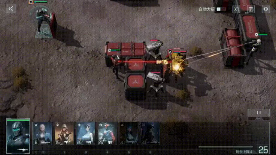 在实战中,建议将暗箱部署在前排,专门负责吸引敌人火力。但请注意,暗箱不适合与敌人正面硬拼,而是要借助掩体来延长存活时间。如果直接与敌人正面对抗,暗箱很容易快速阵亡。另外,使用暗箱时应优先配备护盾装备和提升恢复速度的插件,并尽可能延长掩体持续时间。这些配置将能极大提升暗箱在实战中的综合表现。