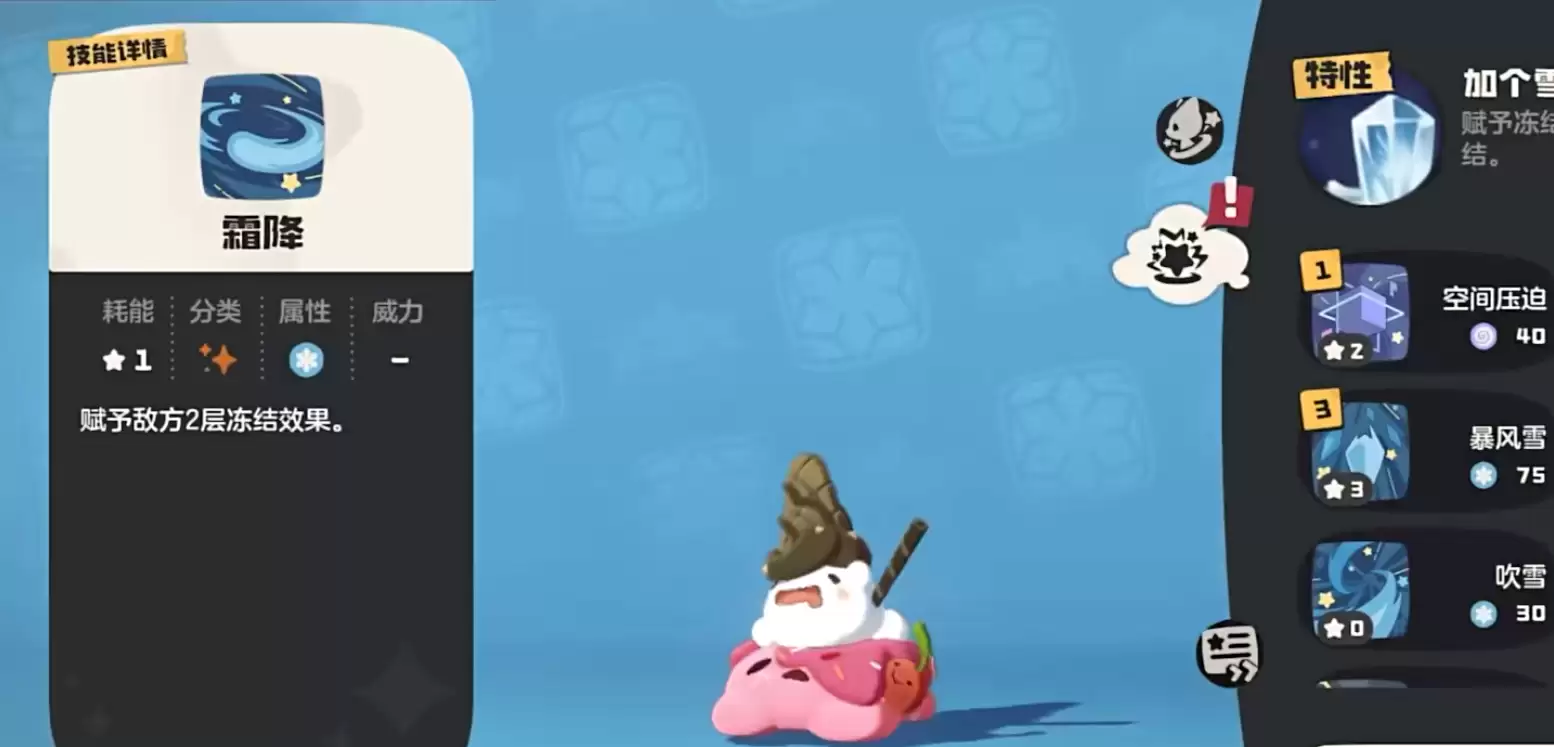 想要为圣代甜甜找到合适的队友,首先需要了解它的技能特性。圣代甜甜主要依靠魔法攻击进行输出,毕竟它的魔攻数值高达126点。其核心机制“加个雪球”触发后,能够为对手额外附加2层冰冻效果。此外,圣代甜甜的多个技能都与冰冻状态相关,因此我们可以围绕这一核心机制来构建阵容。
