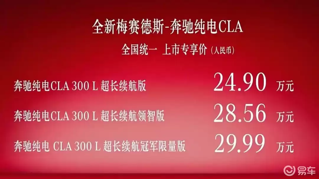 梅赛德斯-奔驰全新纯电CLA近日正式登陆中国市场,共推出三款配置车型,官方指导价区间为24.9万至29.99万元。作为基于MMA纯电平台打造的首款量产车型,新车凭借866公里超长续航、11安全气囊标配以及L2+级智能驾驶系统,充分展现了豪华品牌在电动化领域的深度布局。这款专为中国市场优化的车型,在空间布局、舒适体验与智能科技方面进行了多项本土化升级。