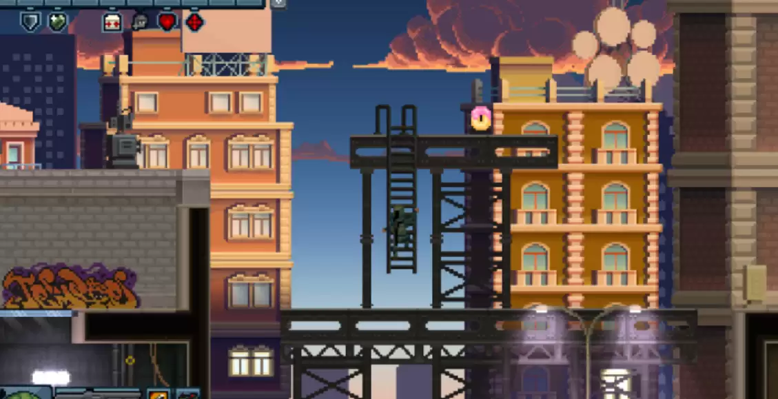在游戏第一章的1-3大使馆关卡中,你会发现本作的第一个甜甜圈。进入场景后,位于第一座与第二座建筑之间的高架平台处,向左跳跃即可轻松拾取。虽然这个位置看似简单,却很容易被忽略——只要掌握基础跳跃技巧,便能顺利入手。而在1-5关卡内,甜甜圈的位置则更为隐蔽:进入关卡后向右下角移动,找到高架并击败沿途敌人,攀上顶端便能发现它。 进入1-8关卡后,你需要前往一楼最右侧区域,沿着地面顶部行走才能找到这枚甜甜圈。虽然路线并不复杂,但需时刻警惕敌人的突袭。1-12关卡的甜甜圈则藏在右侧建筑物的屋顶上,不过那里驻守着一名狙击手。玩家必须巧妙避开他的视线完成突袭,再顺着台阶爬上屋顶才能拾取。这一关难度较高,建议先清理敌人并提升跳跃技巧。