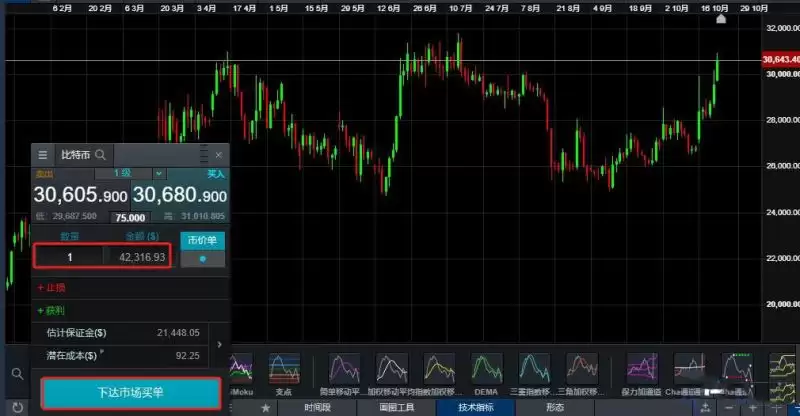 - 在弹窗中输入购买金额,点击下达市场买单即可(注意保证金金额要保证充足,不然无法下单成功)
