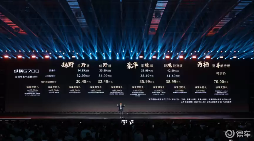 当豪华SUV市场陷入同质化竞争泥潭之时,一款名为纵蟒G700的新车横空出世,凭借"全领域豪华越野SUV"的定位强势破局。这款新车提供32.99万元至41.49万元的市场指导价(限时钜新价为30.49万元起),携十大专属购车权益惊艳亮相,试图在特斯拉Model X、宝马X5等传统豪强构筑的市场壁垒中,开辟一条全新的赛道。