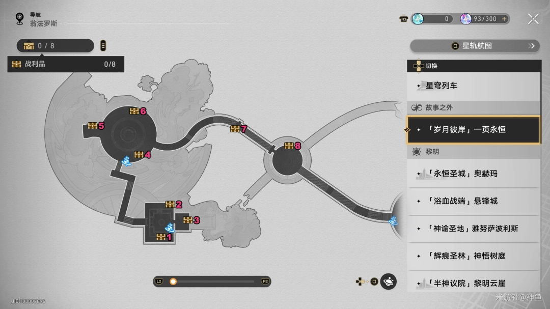 在3.7版本的新区域「翁法罗斯」中,全新场景「岁月彼岸·一页永恒」共设有8个战利品宝箱等待着玩家的探索。