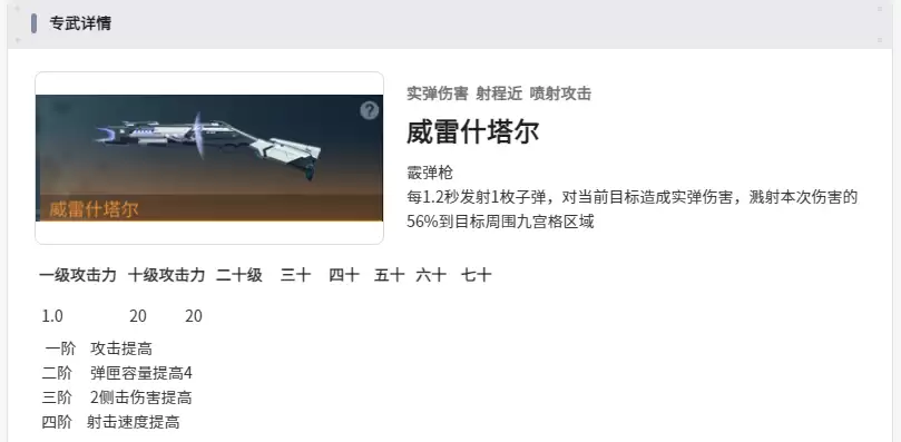 在装备和插件方面,威雷什塔尔是不可忽视的核心装备,每1.2秒便可发射一枚造成50%溅射伤害的弹药,完全满足群体攻击的需求。升级至高阶后,还能进一步提升侧击伤害,有效强化输出能力。插件首选专属插件,例如3号插件能在大招期间有效降低23%所受伤害,4号插件则让战斗技能在击退敌人时恢复70点大招能量。此外还需搭配5号插件与6号插件,当这4个专属插件集齐后,她的攻防能力将迈上全新的台阶。