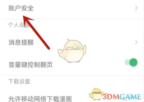 2、点击账户安全选项。