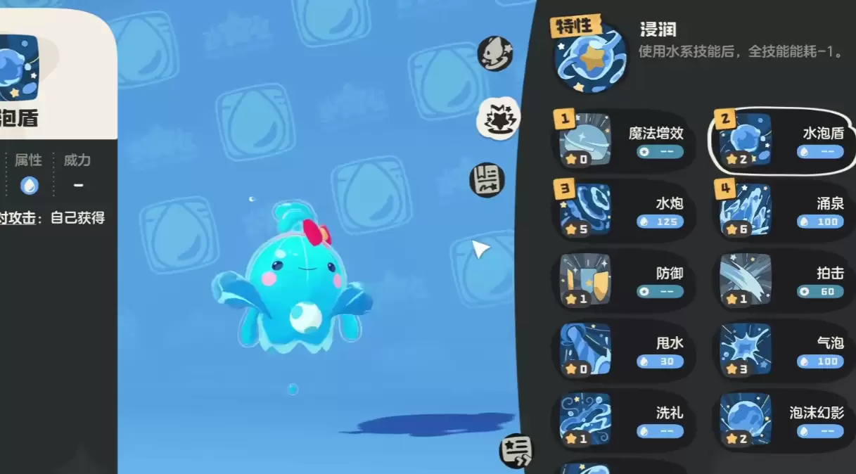水蓝蓝是玩家在游戏初期就能获得的伙伴,其核心技能“水之波纹”具备群体减速效果,同时附带的“治疗水滴”还能持续恢复生命值,在前期作战中既能维持队伍续航,又能带来一定的输出贡献。