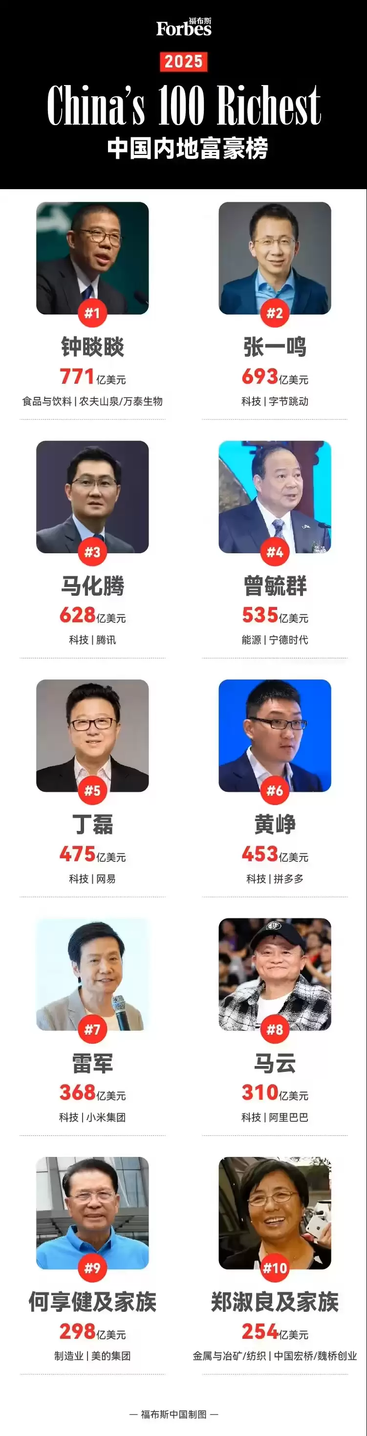 2025福布斯中国内地富豪榜:DeepSeek梁文锋首次上榜