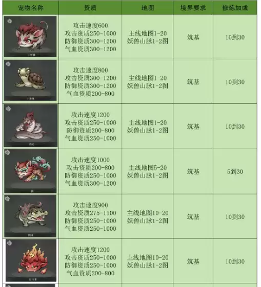 妖兽都属于过渡性宠物,不需要过多追求或反复刷取,只需抓几只资质与成长较好的作为当前境界的主力,同时解锁技能格。格子开启得越多越好,多余的可留作后备,为后续更高级宠物充当“垫子”。