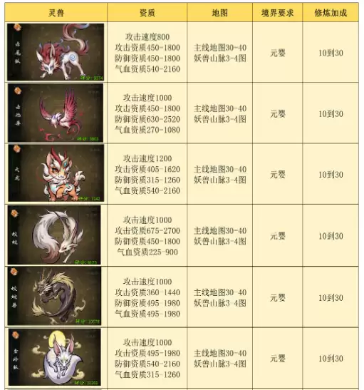 灵兽中有好几只都可以作为魂兽,甚至是仙兽的优秀资质或狗粮材料。可惜游戏中宠物没有仓库功能,但还是建议大家保留一部分。