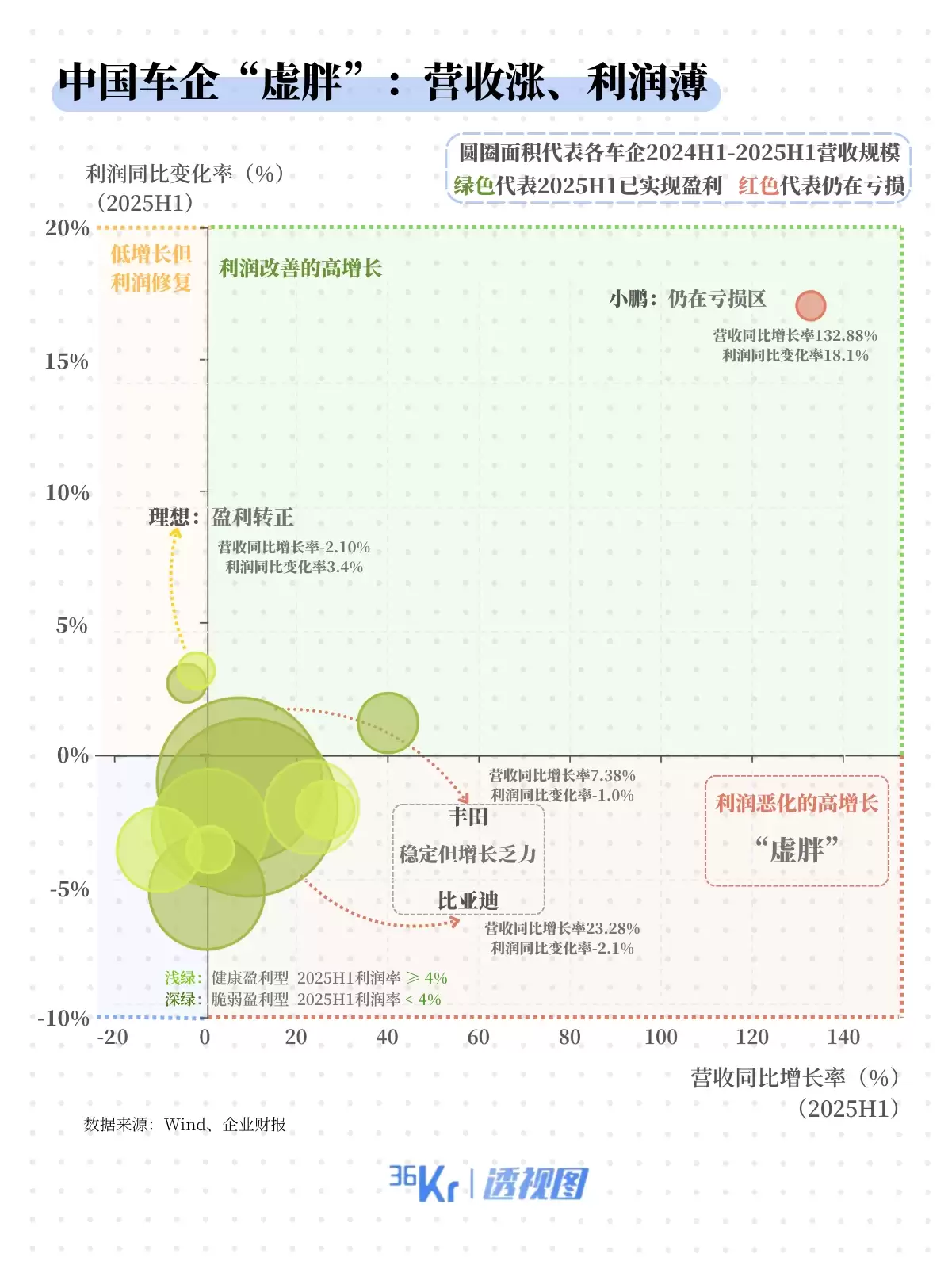 2025年9月,新能源汽车平均售价首次跌破16万元,下滑至15.8万元,这是自2019年以来的首次。激烈的市场竞争正在重塑行业格局,理想、小鹏等新能源品牌虽然销量有所上升,但利润增长乏力;而比亚迪、丰田、大众等企业则陷入营收增长但利润下滑的困境。长期降价带来的反噬效应已经开始显现。