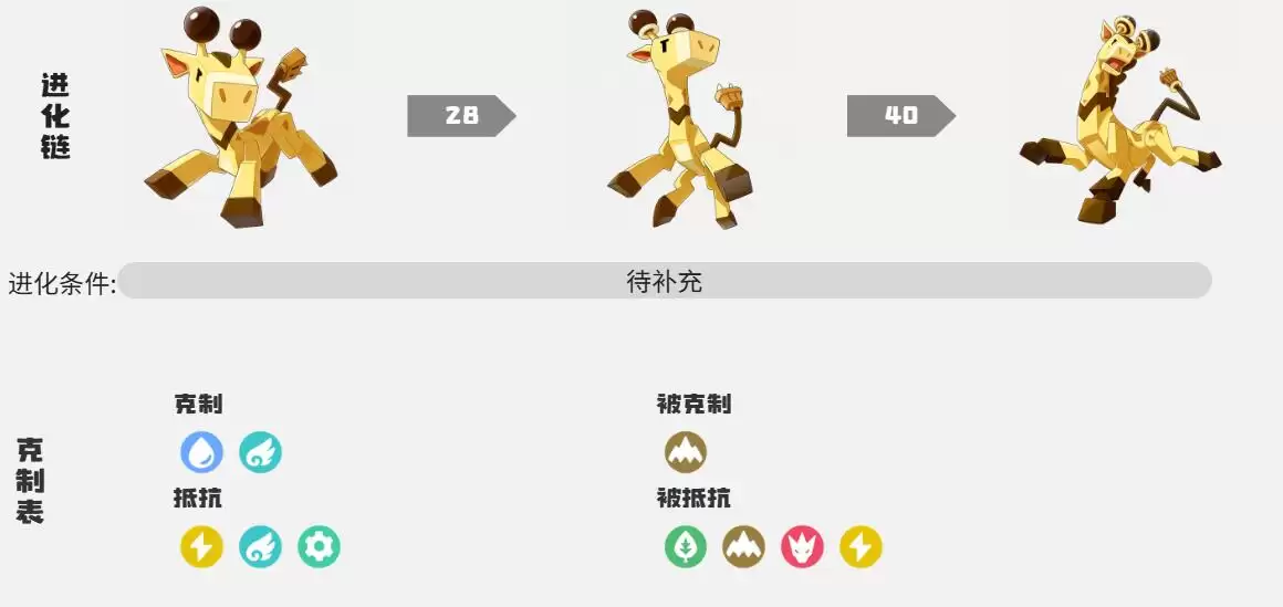 奔乐鹿最初以电动长颈鹿的形态出现,灵动的模样让人忍不住想亲近。经过初次进化后成为第一阶段的奔乐鹿,当它达到40级时将再次进化,最终形态便是威风凛凛的爵士鹿。这只精灵最擅长的莫过于魔法攻击,因此在培养过程中,建议着重强化它的魔法输出能力。奔乐鹿的电磁波技能可以直接麻痹对手,属于相当实用的控制技能。在战场上,它还能通过施展靡靡之音有效削弱对手的防御和魔抗,为团队创造优势。