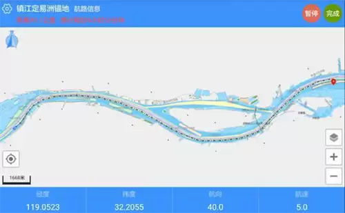 1、在航道图中用手指长按一处地理位置,比如镇江定易洲锚地。点击“去这里”,船e行App就可快速规划出航行路线。随着你的船舶逐渐航行到达目的地或者目标船只,App也会同样语音提醒您已经到达目的地附近!