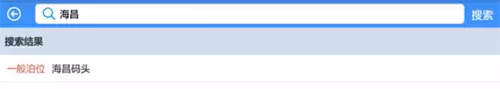 在船e行app中如何搜索?只需点击右上角的放大镜按钮进入搜索栏,无论是输入目的地的中文关键词、拼音,还是目标船舶的MMSI码、船名中文或拼音都能查找。举个例子:要查找江都港海昌码头,只需要输入“海昌”两个关键词,点击搜索即可找到结果。