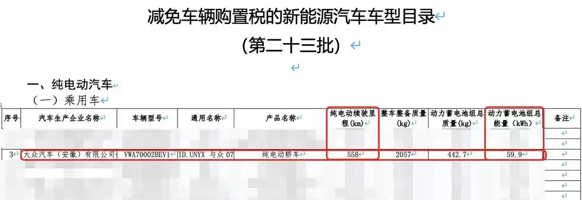 大众安徽07申报信息曝光,59.9kWh电池续航达558公里