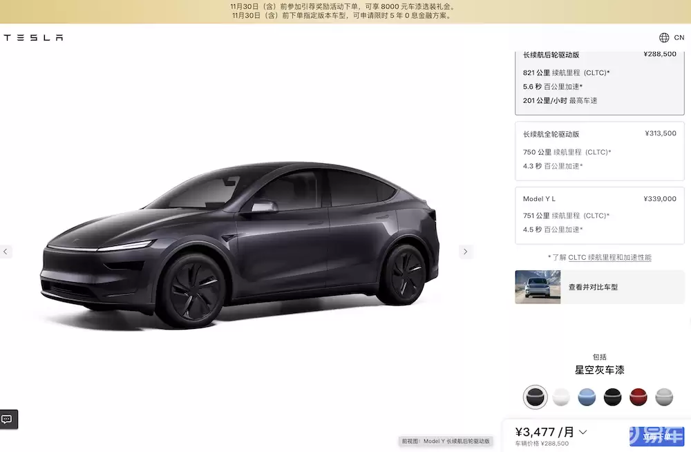 交付周期方面,预计新车将在2-4周内完成配送。值得注意的是,这款长续航后驱版的推出正值特斯拉中国区销量波动期。最新行业数据显示,2025年10月特斯拉中国批发销量为61497辆,同比下降9.9%,环比降幅达32.3%,在新能源乘用车市场排名第七。此次产品矩阵的优化,特别是针对用户核心诉求的续航升级,被视为特斯拉重夺市场份额的关键举措。结合海外标准版Model Y加速交付的动态,显示这家电动巨头正通过差异化策略巩固中高端市场地位。