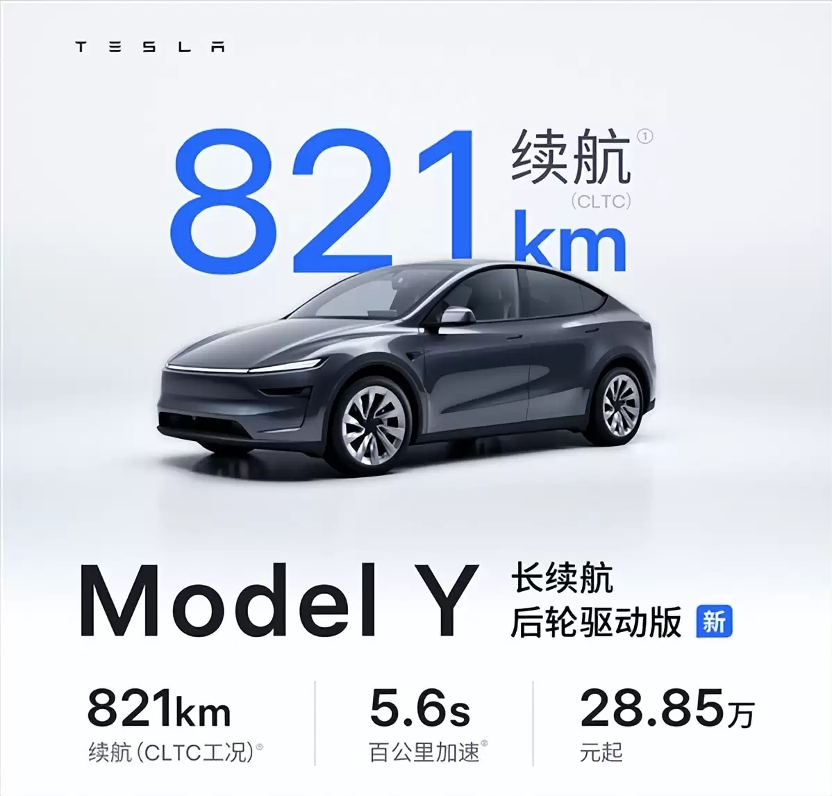 特斯拉Model Y新车型上市:821公里续航,售价28.85万起
