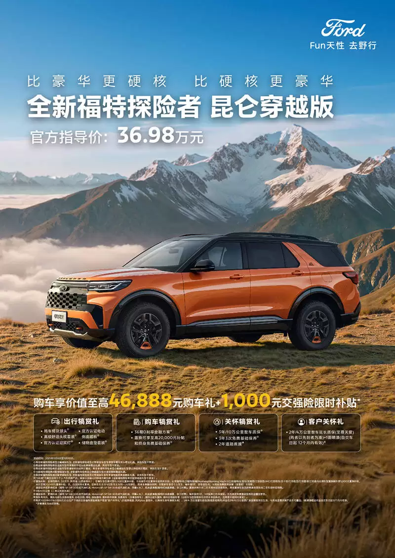 福特探险者昆仑巅峰版上市,36.98万起配硬核越野配置