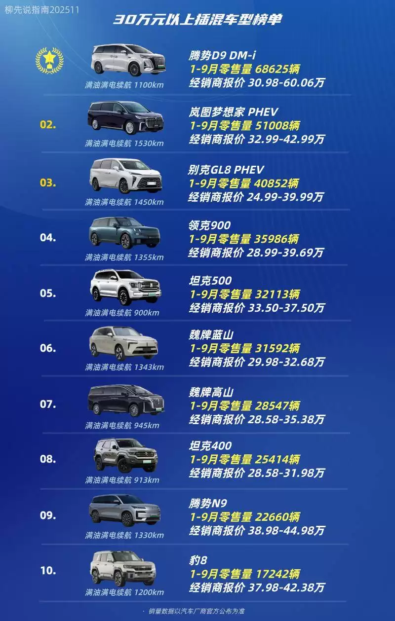 高端插混市场崛起:2025年前9个月热销车型重塑竞争格局
