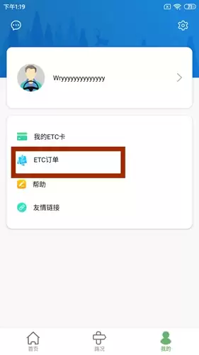 首先打开河北ETC官方APP,进入个人中心界面,点击“ETC订单”选项。