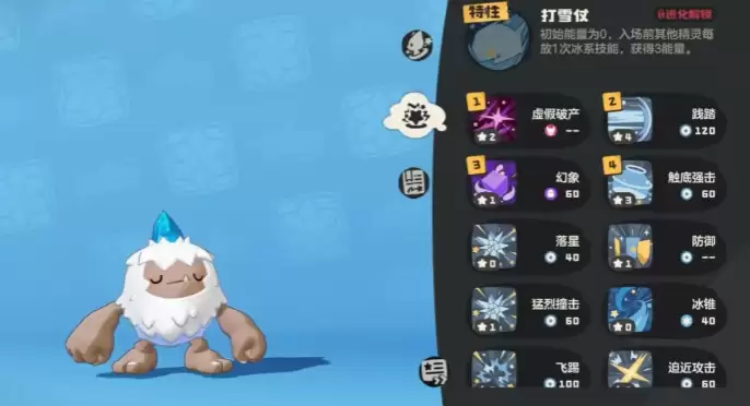 刚开始时,雪豆丁会掌握冰之碾、猛烈撞击这些基础技能,不用太复杂的操作就能直接打物理伤害。随着等级慢慢提升,能解锁的技能就多了。冰之球很有意思,不是一下打出去就完了,而是能连续打好几个回合,并且越往后威力越大。三角之力更特别,运气好的话还能让对手陷入麻痹、烧伤或者冰冻的状态,打乱对方的节奏。到了高阶阶段,它还能学会践踏、吞噬、压扁这些厉害的物理攻击技能,尤其是有些技能得靠能量才能发挥最大效果。