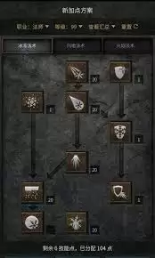 - 冰系技能:优先点满冰弹、冰尖柱等前置技能,确保冰环等级足够高,以获得强大的控制效果。暴风雪可以适当投入一些点数,用来扩大范围伤害。