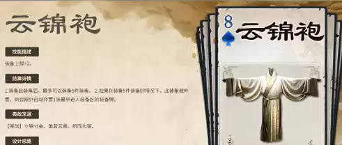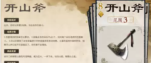 云锦袍作为典型的防御向装备,具备提升装备栏上限+2的被动效果。当玩家装备区已满五件时,若继续装备云锦袍,系统会自动移除最早置入的一张装备牌,体现出“以退为进”的战略思维。该装备支持与其他类型装备共存,可构建包含物理防御、火伤减免及闪避能力的多重防护体系。同时兼容多种搭配方案,适用于主将角色或需要长期作战的阵容配置。另一款代表性装备——开山斧,则侧重于攻击输出。其基础属性增强了攻击范围与暴击伤害,专属技能“地裂”允许使用者在打出【杀】时弃置一张手牌,使此次【杀】的伤害+1,且此增益可叠加。凭借高额爆发与群体压制能力,开山斧能够在关键时刻实现清场效果,是强攻流派的重要选择。
