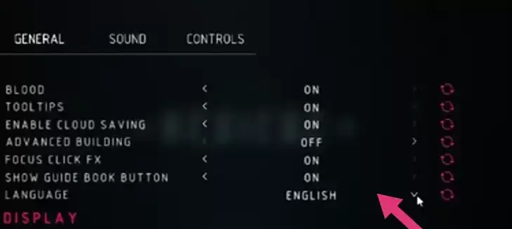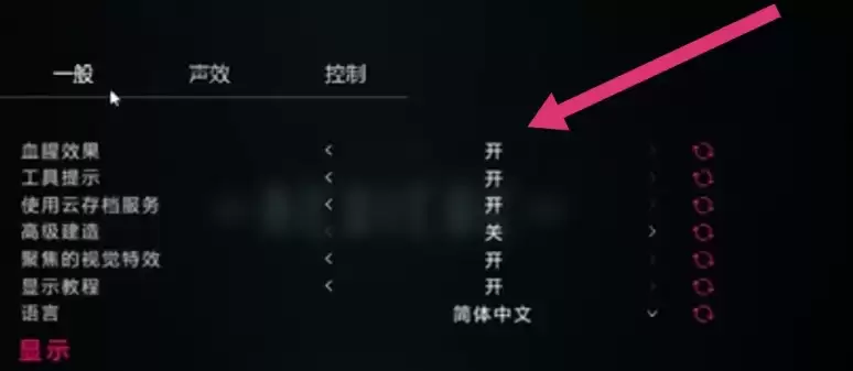 进入设置页面后,这里包含了声音、画面、控制等多种选项。我们的目标是找到语言设置模块,在页面中定位到“language”这一项。初次进入时,这里默认显示的是“English”,因为游戏初始语言就是英文。